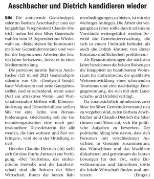 Für weitere drei Jahre darf ich mich als Gemeindepräsidentin für Sils einsetzen.